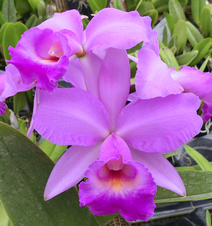 (Dubiosa x Pearl Harbor). You can expect a delightful range of delicate pale lavender to deep pink-lavender 5″ blooms with full shape. All of these have some contrasting yellow to deep orange markings in the lip. These will make a charming addition to your collection.