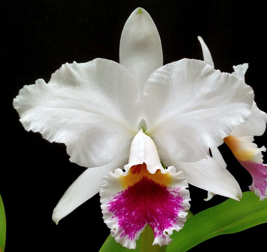 (‘Blumen Insel’ x ‘Atriz’). Two superior varieties of labiata semi alba should produce large, well shaped offspring. Expecting 6″ snow white flowers with a purple lip with nice full shape.