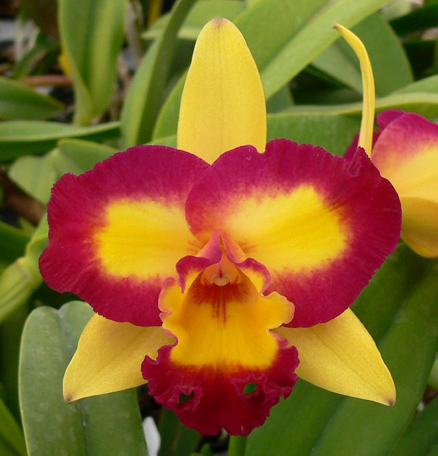 (Pot. Kat E-Sun x Blc. Tzeng-Wen Beauty). Striking yellow 3″ flowers with the petals and lip heavily edged with bright magenta. Compact plants.