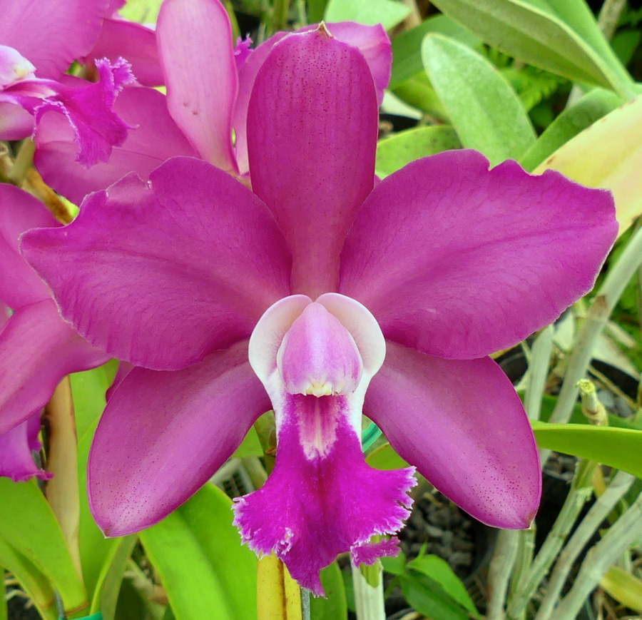 We are expecting exceptional bifoliate cattleyas from this cross made by Beth Lamb. One parent is 25% C. bicolor and the other is 50% and Blc. Oconee is in there too so these should bloom with heads of waxy purple flowers and a deep magenta spade lip. There is potential for other colors such as burgundy or red and they should be fragrant. Pictured is parent Rlc. Valerie’s Charm.